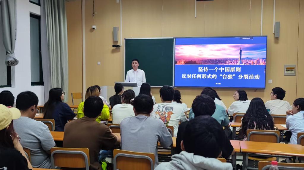 孙士俊以《坚持一个中国原则,反对任何形式的“台独”分裂活动》为题,从“坚持一个中国原则”、“坚决反对任何形式的‘台独’分裂活动”、“继续全面贯彻实施新时代党解决台湾问题的总体方略,推进国家统一进程”等方面阐述解决台湾问题、实现国家完全统一,是中华民族历史发展的必然趋势,也是全体中华儿女的共同心愿。