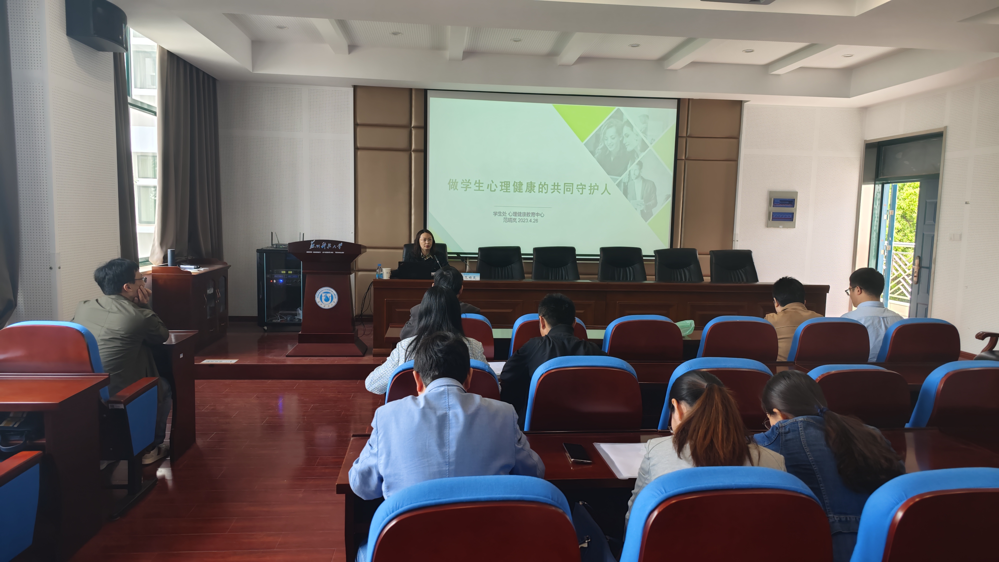 为强化专业老师心理育人职责,提升老员工心理健康教育工作的针对性和有效性,4月26日下午,伟德国际victor1946在公司报告厅开展“做员工心理健康的共同守护人”专题讲座,特邀校员工工作处副处长、心理健康教育中心主任范晴岚老师主讲,公司领导班子成员、专业老师及全体辅导员参加。