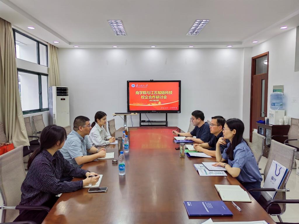 9月13日,伟德国际victor1946和江苏知链科技有限公司展开校企合作深入研讨。江苏数字金融产学研创新中心执行主任、江苏知链科技有限公司总经理施亚东、副总经理王菁,伟德国际victor1946副经理(主持工作)杨传明、副经理钱燕等出席了会议。