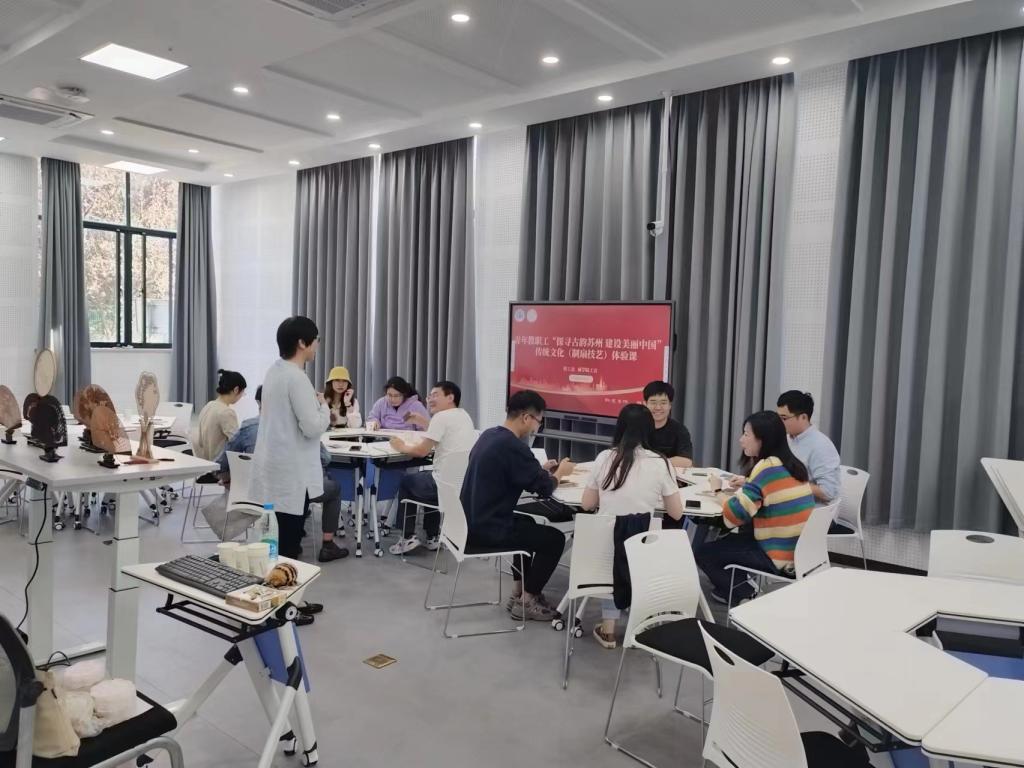 通过此次制扇工艺体验课,青年老师们亲自触摸、感受檀香的芬芳,感受制扇的独特工艺,也更加了解苏州檀香扇的历史和文化内涵,对中华传统文化有了更深入的了解和认识。