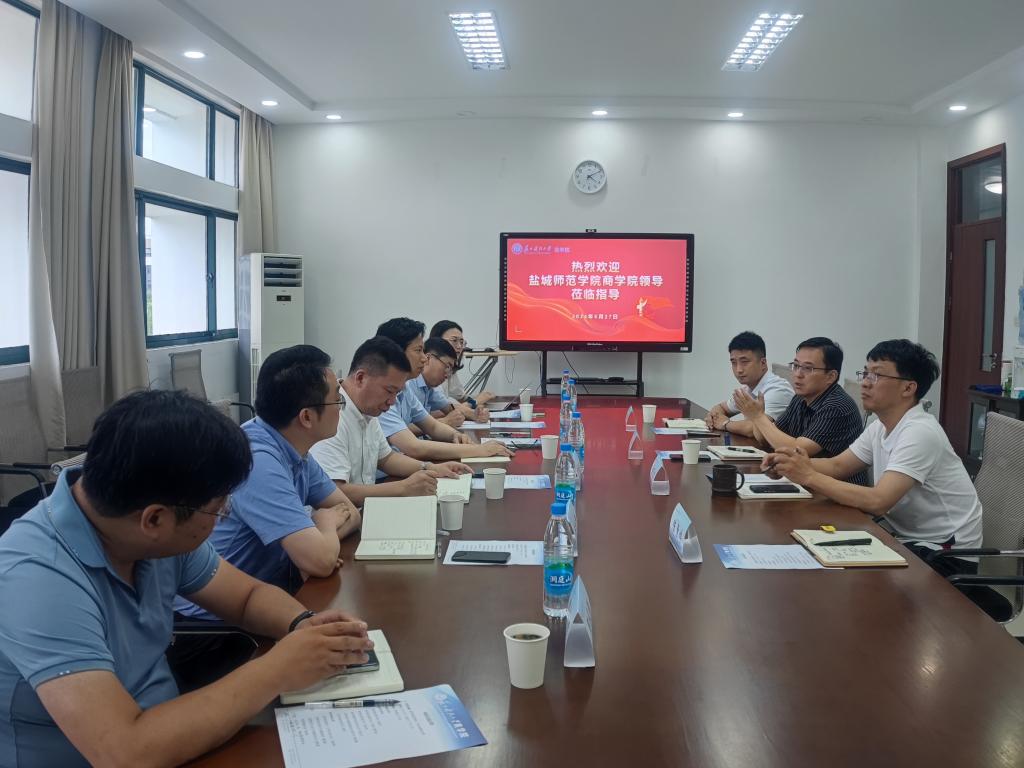 6月27日下午,盐城师范公司商公司党委书记刘振亚、经理殷凤春一行来公司伟德国际victor1946调研交流。伟德国际victor1946副经理(主持行政工作)杨传明、副书记兼副经理董现珠等参加调研会。