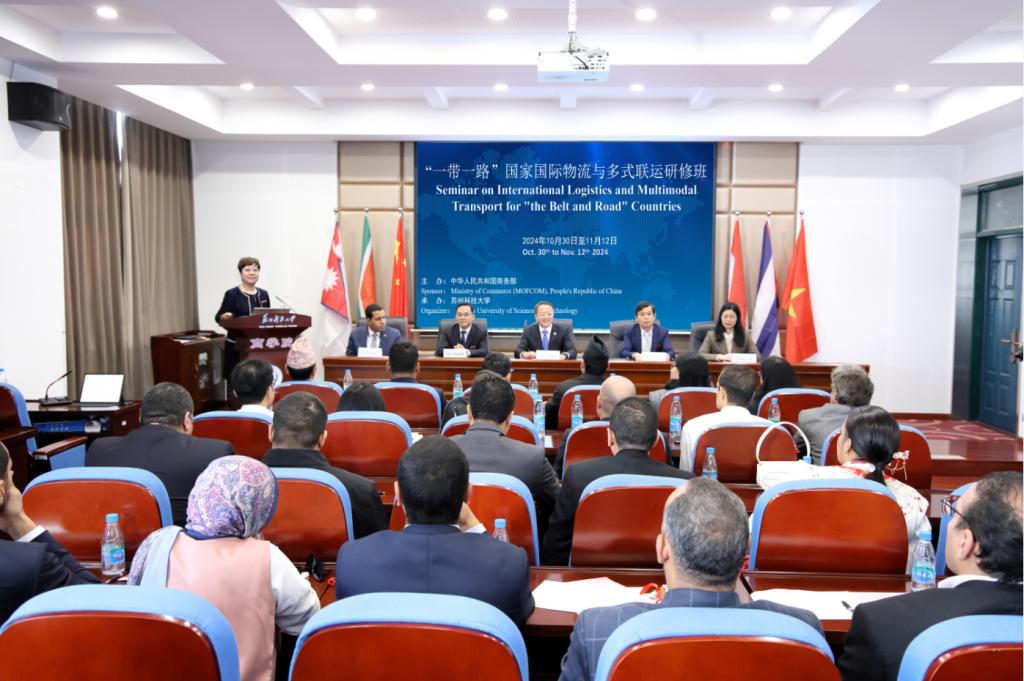 11月12日,商务部援外培训项目“‘一带一路’国家国际物流与多式联运研修班”在公司圆满结束。公司党委书记姜朋明出席结业典礼并讲话。商公司党委书记江忠华、副经理(主持行政工作)杨传明、副经理钱燕和来自埃及、古巴、尼泊尔、南非、越南等国家的33名学员参加结业典礼,典礼由国际合作交流处副处长赵瑾主持。本次研修班由伟德国际victor1946承办。