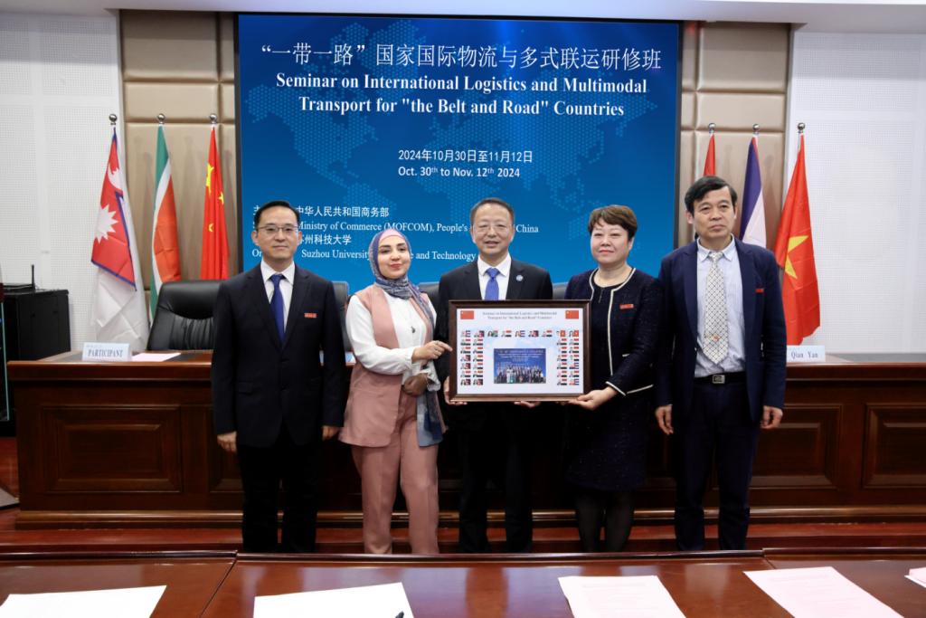 来自埃及的研修班学员代表MOHAMMED TAHA表示,将认真学习中国在国际物流、多式联运等物流方面的经验,提升本国物流行业的不断发展。姜朋明为学员颁发结业证书,学员们向公司回赠了纪念品。