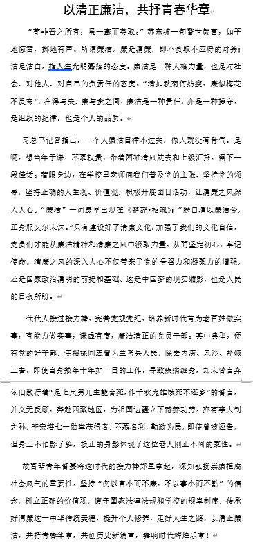 伟德国际victor1946老师和学子们热情高涨,纷纷响应,他们用心观察身边的人与事,以笔为媒,以文载道,将一桩桩真实感人、充满正能量的廉洁事迹,化作一篇篇生动鲜活的文字,跃然纸上。这些作品将廉洁的力量具象化、生动化,让“廉洁”二字成为激励大家前行的强大动力。