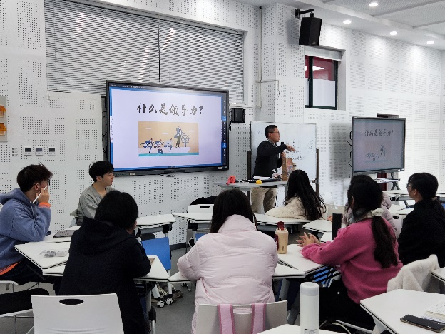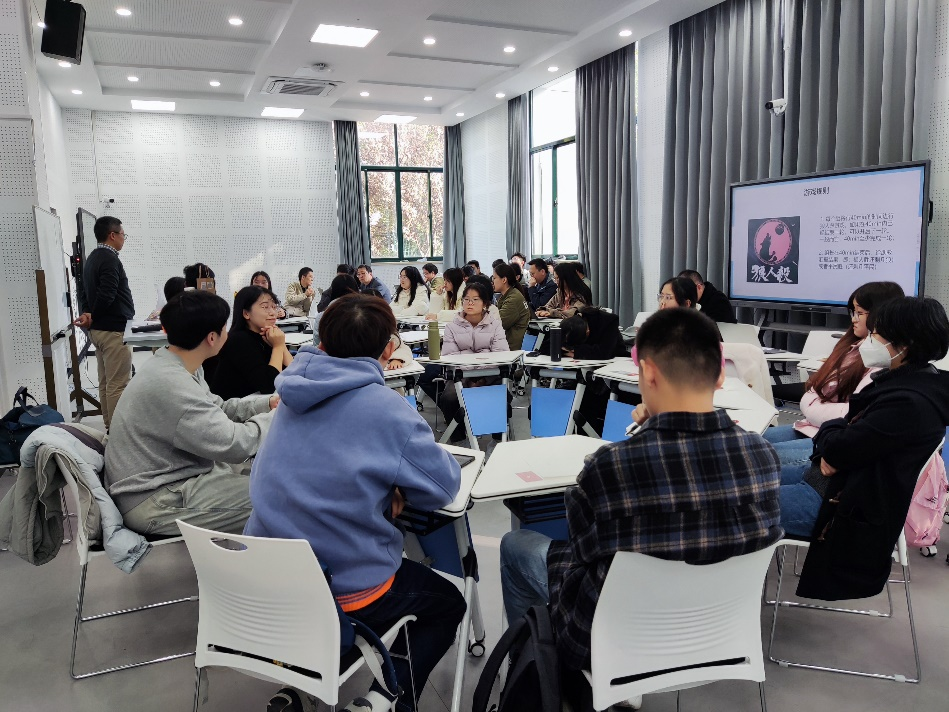 赵扬首先阐释了领导力、权力和影响力的含义,然后通过让两组师生玩“狼人杀”游戏的方式逐步引出课程的主要内容,最后根据游戏结果评价和总结在游戏过程中领导力、权力和影响力所起的作用,并引发师生对职场、对工作等方面更深层次的思考。