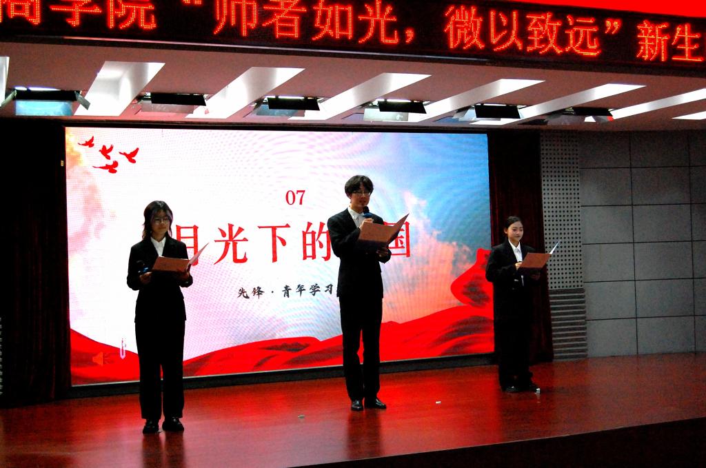 活动开场,新生们倾情朗诵,《灯塔》绘希望,《红色的起点》溯历史,多组作品展现师者光辉。先锋·青年学习社成员朗诵《月光下的中国》,气氛热烈。陈俊梁上台不仅分享人生经验和感悟,还带来了朗诵《当你老了》,赢得阵阵掌声。