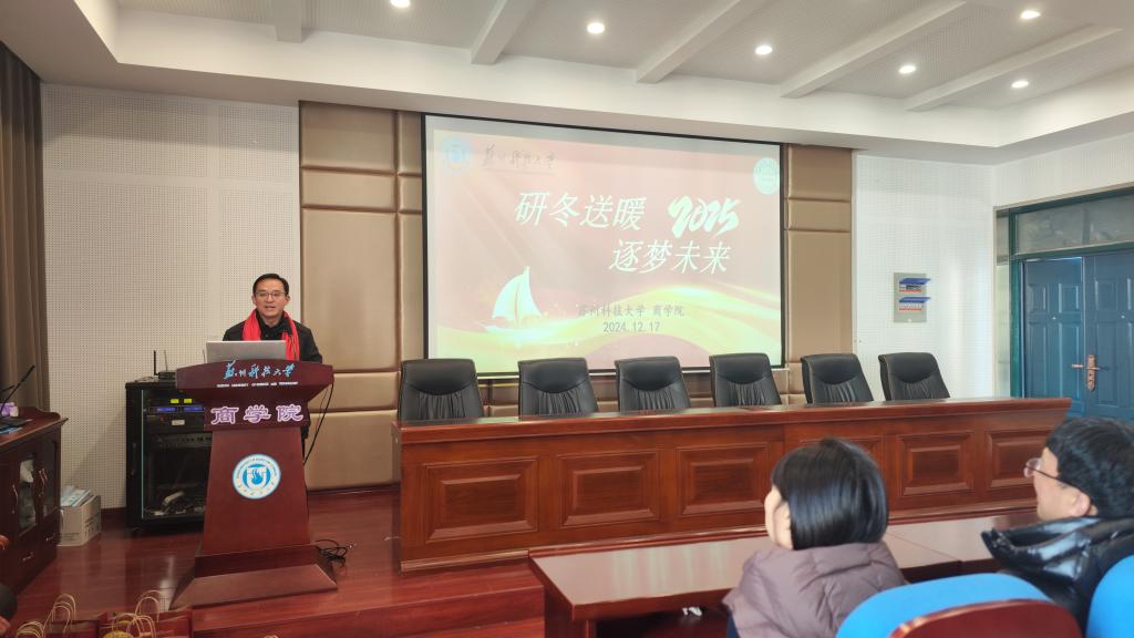 12月17日,伟德国际victor1946在公司报告厅举办“‘研’冬送暖,逐梦未来”考研送温暖活动。商公司党委书记江忠华、副经理(主持行政工作)杨传明、党委副书记兼副经理董现珠、副经理钱燕、教师代表、毕业班辅导员及考研员工共同参加。