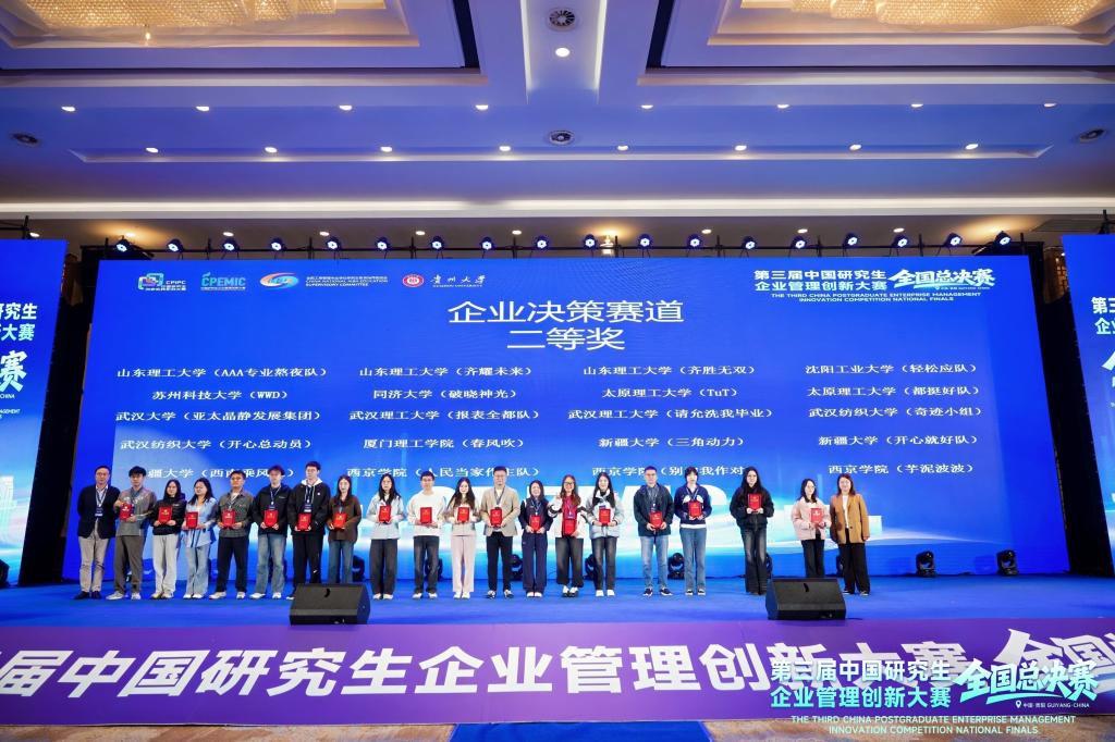 中国研究生企业管理创新大赛由教育部学位管理与研究生教育司指导,中国学位与研究生教育学会、中国科协青少年科技中心主办。本届大赛分为企业决策、商业分析与实践、工商管理案例和AI与数字技术应用四个赛道。其中企业决策赛道共吸引来自304所高校的2514支队伍报名参赛,245支队伍晋级企业决策全国总决赛。