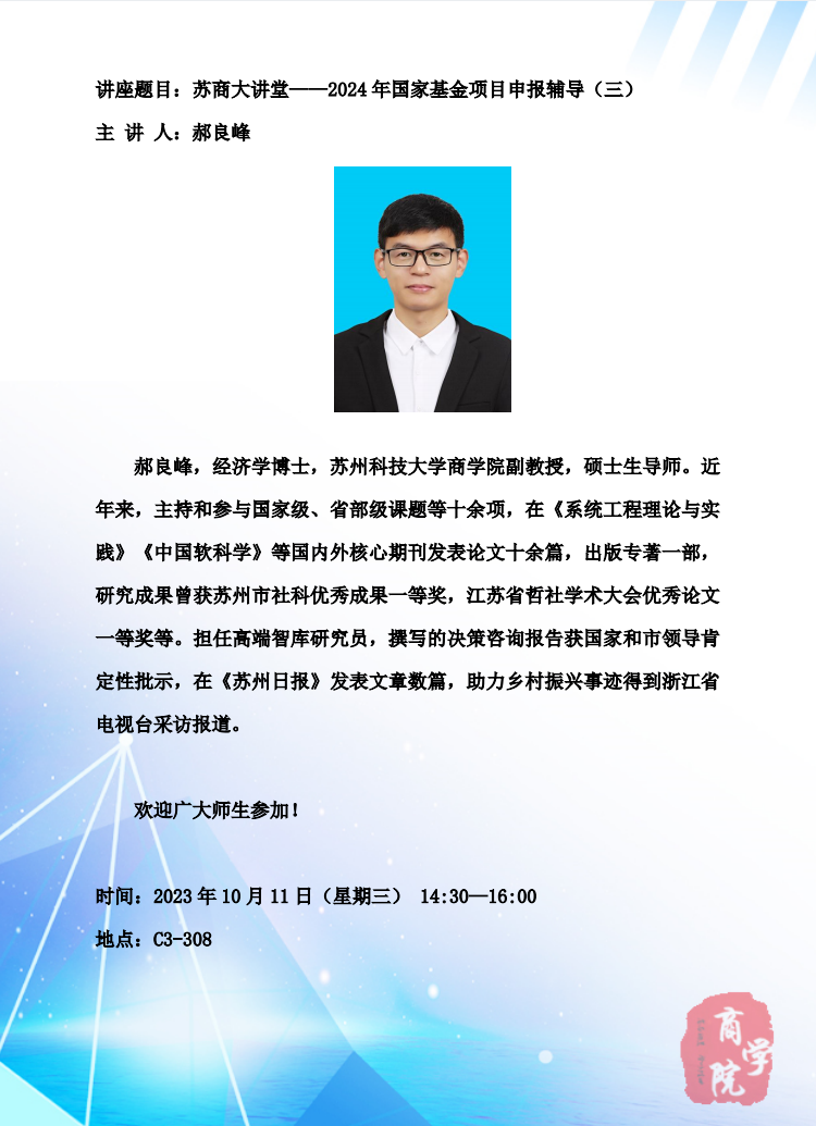 苏商大讲堂——2024年国家基金项目申报辅导(三)