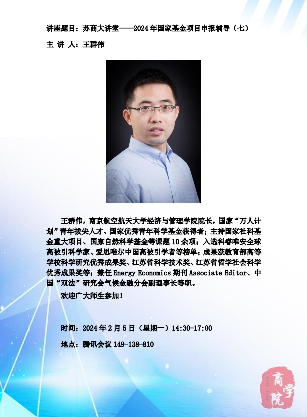 上一条:苏商大讲堂——2024年国家基金项目申报辅导(八)