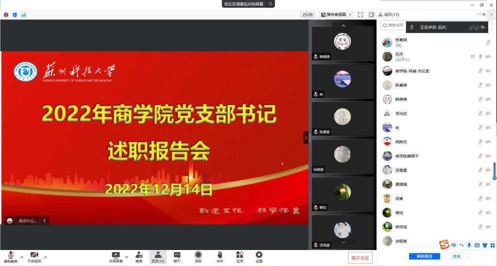 伟德国际victor1946于12月14日下午采取线上线下同步召开党支部书记党建工作述职评议,听取6个教工支部和8个员工党支部书记抓基层党建工作述职,并进行现场评议。会议由商公司党委书记江忠华主持,党委副书记兼副经理董现珠、全体党支部书记参加会议。