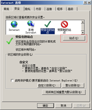 打开IE的“Internet选项”在“安全”选中“受信任的站点”点击“站点”,添加当前站点为信任站点